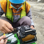 3. Splicing & terminasi fiber optic – Penyambungan serat optik menggunakan mesin fusion splicer agar minim loss.