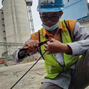 1. Pemasangan kabel fiber optik indoor & outdoor – Untuk koneksi antar-ruangan, antar-gedung, hingga jaringan antar-kawasan industri.